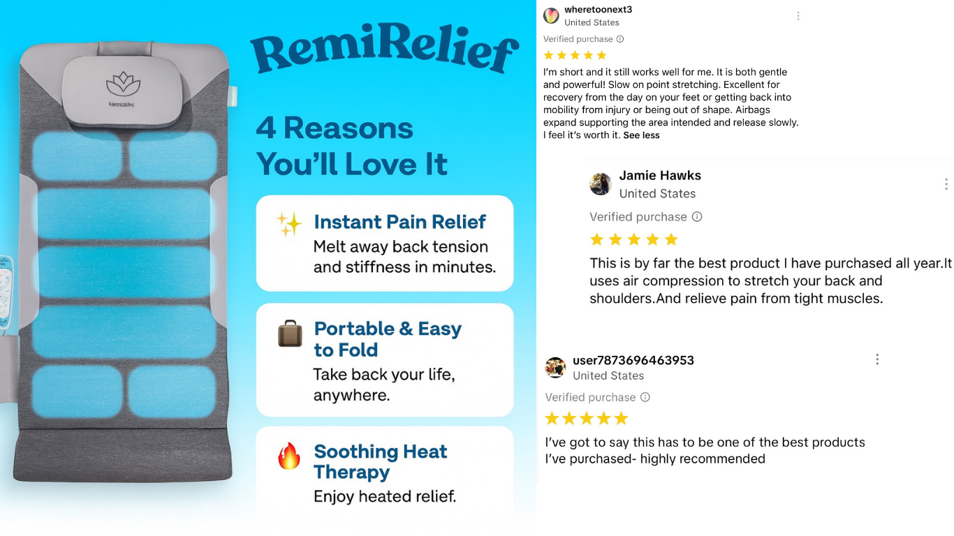 RemiRelief™ Back Mat —Instant Back Pain Relief at Home